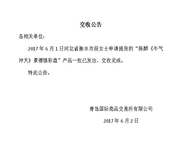 景德镇彩盘七十六批提货公告