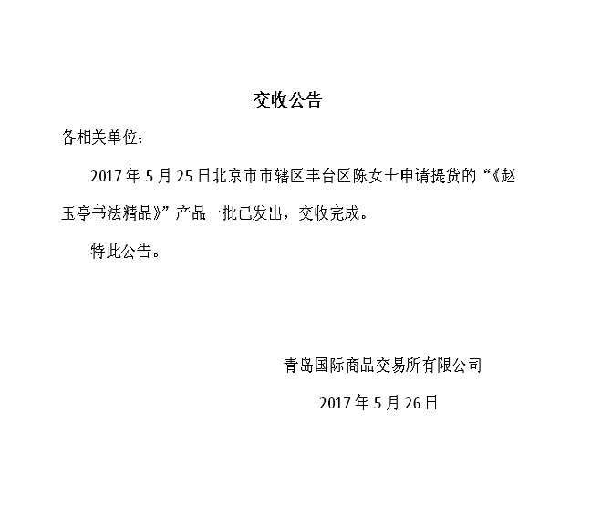 赵玉亭书法精品六十五批提货公告