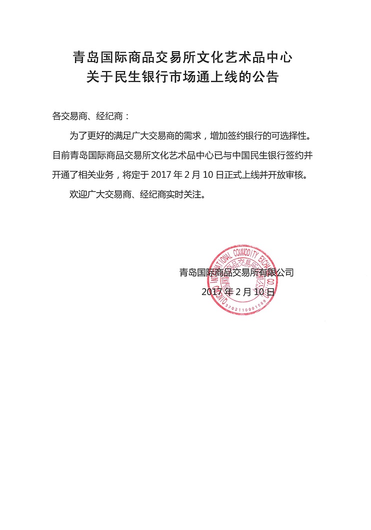 您好,欢迎来到青岛国际商品交易所文化艺术品交易中心!