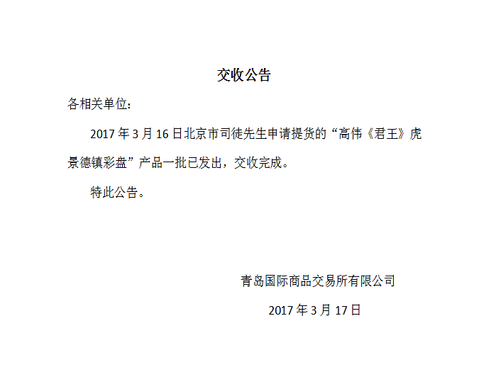 景德镇彩盘五十二批提货公告