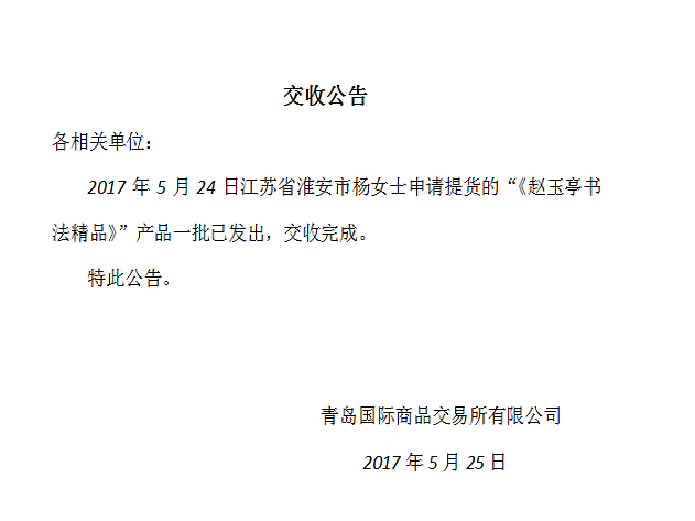 赵玉亭书法精品四十五批提货公告