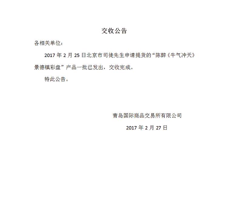 景德镇彩盘二十六批提货公告