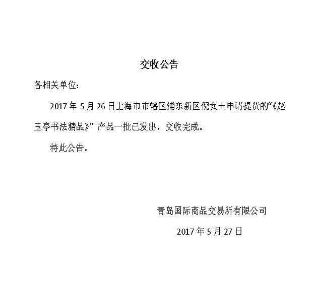 赵玉亭书法精品七十五批提货公告